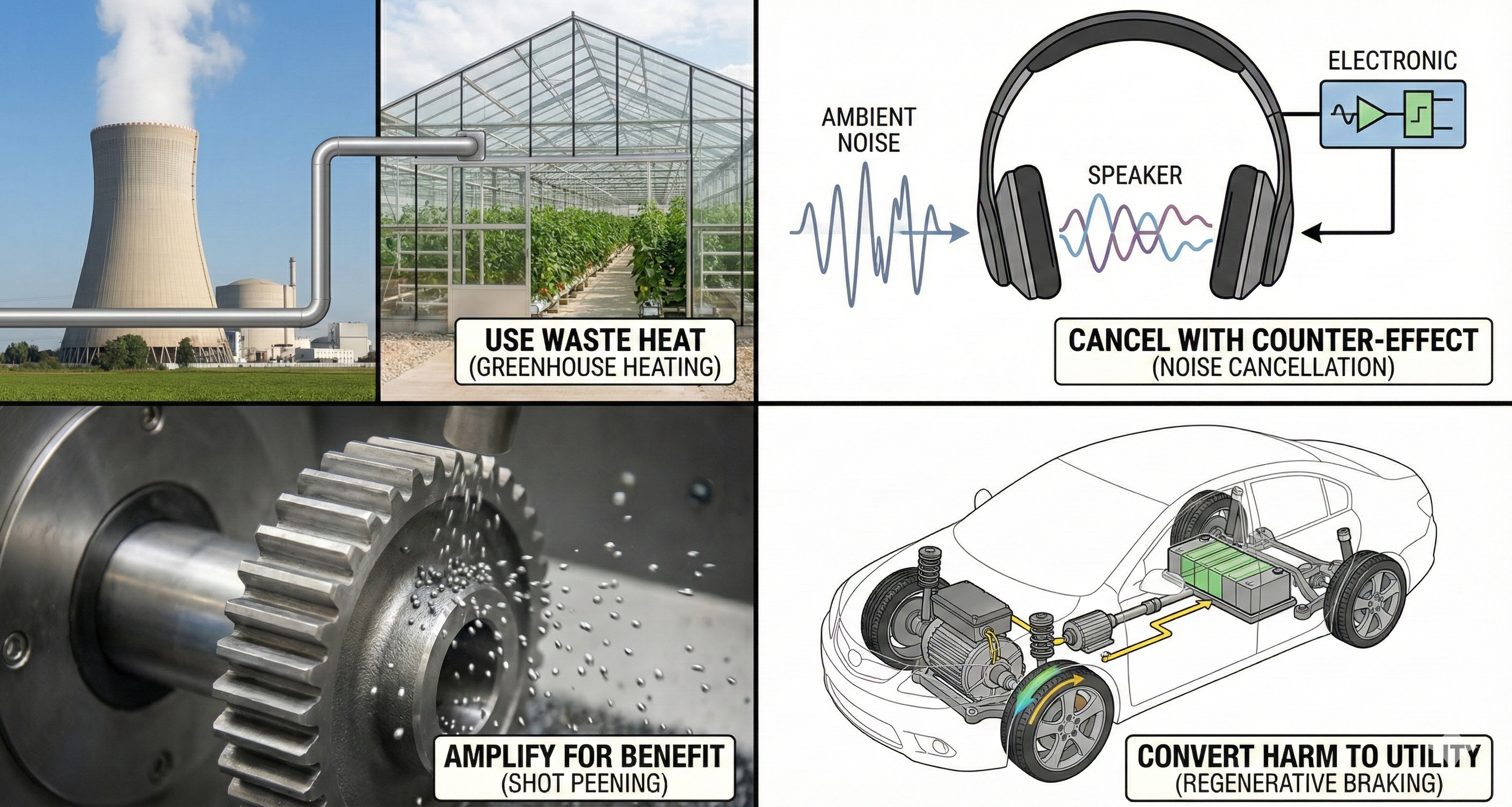 Blessing in Disguise (Turning Harm into Good) is the practice of turning a harmful effect (or an unwanted by-product) into a useful resource. Instead of spending effort to eliminate heat, noise, vibration, waste, contamination, friction, or 'undesired side effects,' you redesign the system so that the same effect performs a useful function—making the contradiction disappear because the 'problem' becomes part of the solution.