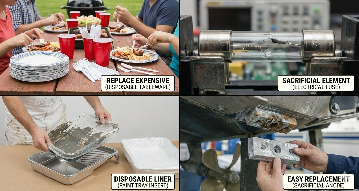 Use disposable or sacrificial elements that take wear, contamination, heat, chemical impact, or movement, protecting the main system;