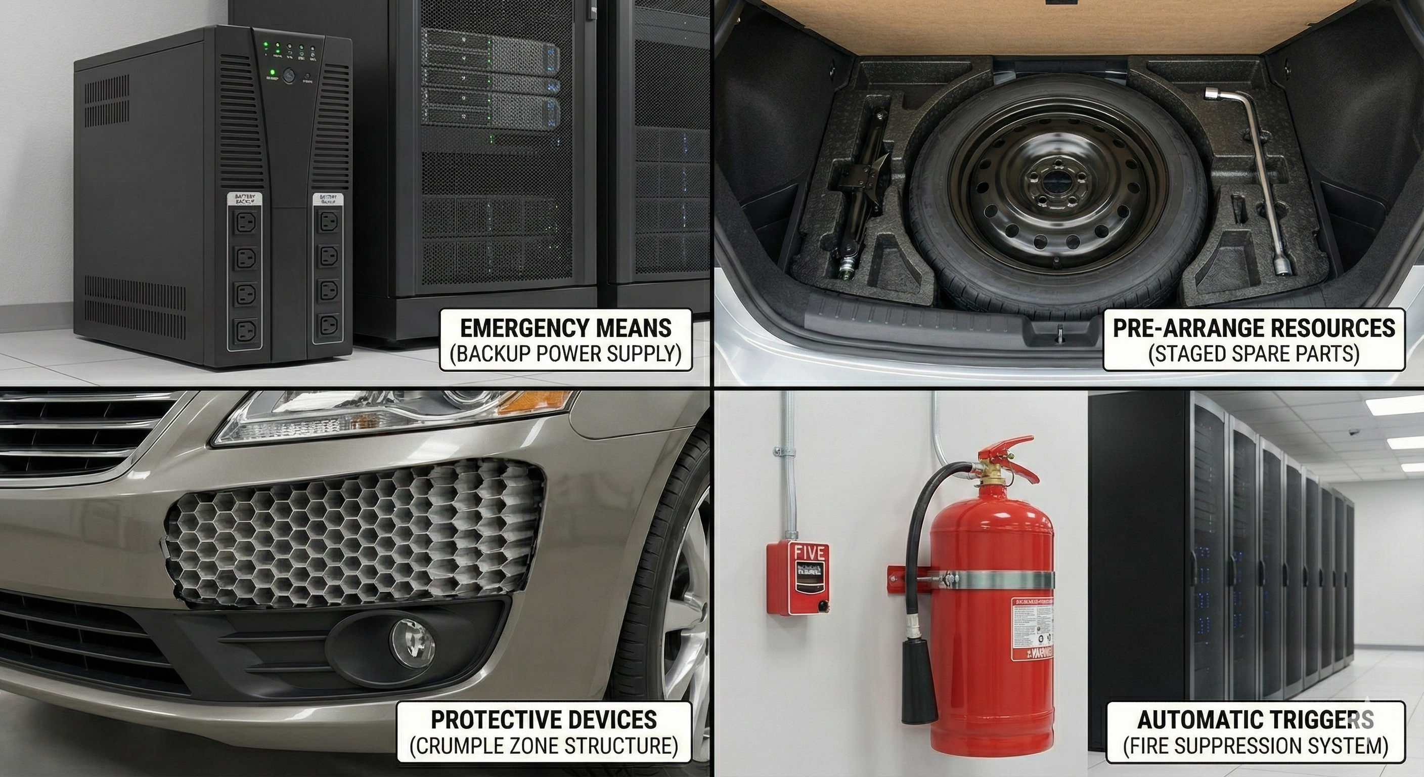 Cushion in Advance (Before-hand Cushioning) is the practice of preparing an emergency backup, safety buffer, or protective layer in advance to compensate for the low reliability or unpredictable risks of an object—it's a 'safety net' approach that ensures even if the primary system fails, the damage is minimized or avoided.